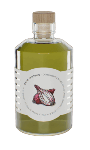 Condimento a base di olio extra vergine di oliva e bergamotto fresco, ottenuto dalla contemporanea molitura di olive e bergamotto fresco di Calabria.